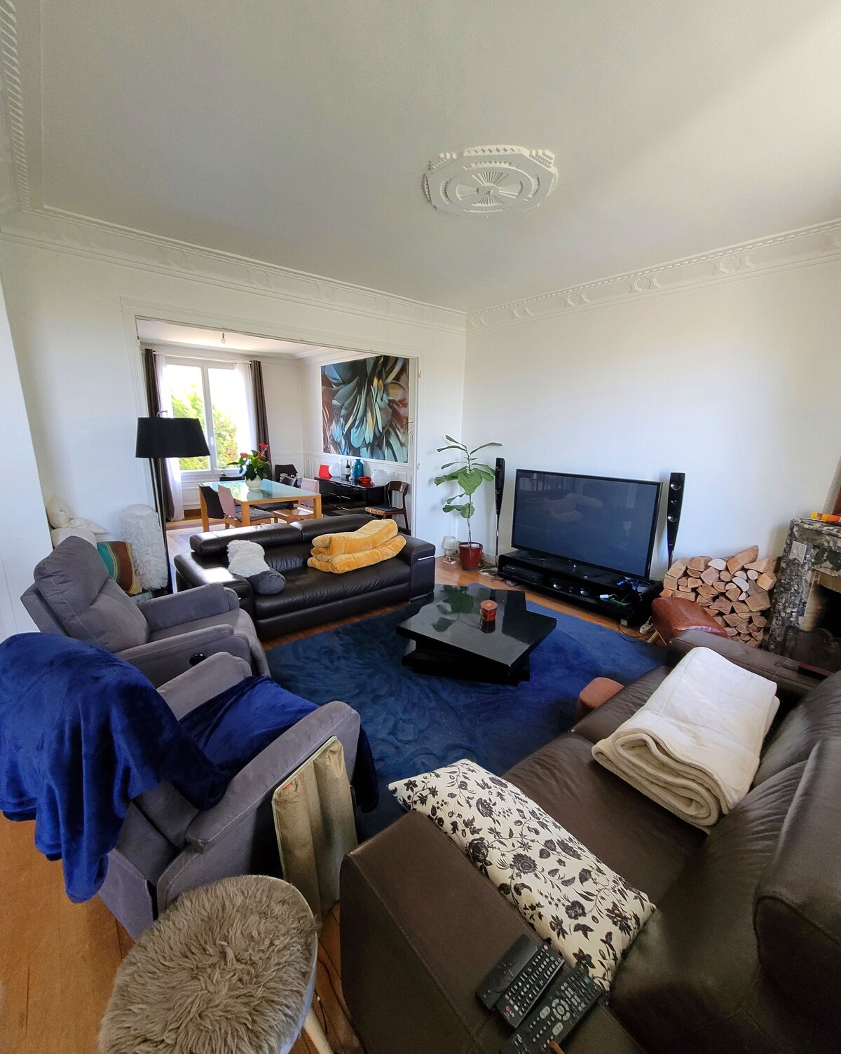 Maison d'exception au coeur du parc du Gatinais. A 10 minutes des sites d'escalade de Buthiers, de son centre de loisirs, de Milly la foret et de ses commerces de bouche. La forêt devant le portail d'entrée et la campagne à l'arrière offrent de grandes promenades et randonnées. Des jeux de société, une salle de projection avec 500 films, un babyfoot, des livres et BD, une cuisine aménagée, des livres de cuisine ainsi qu'une grande cheminée vous permettent de profiter de la maison en soirée.