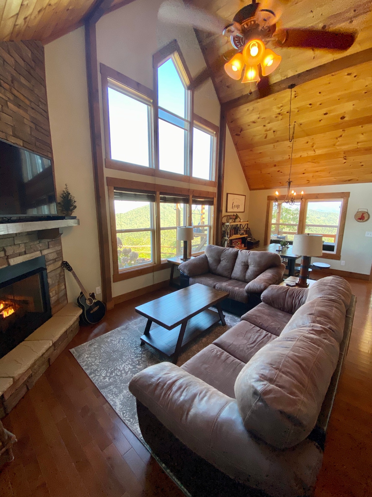 Nous sommes ouverts ! Asseyez-vous dans les rockers avec votre café du matin, mangez vos repas à la table de la cuisine ou asseyez-vous devant la cheminée tout en profitant de la vue imprenable ! Le jacuzzi est situé sur la terrasse donnant sur la magnifique vue sur la montagne. Nous sommes à seulement 20 minutes de Bryson City et du Nantahala Outdoor Center, à 10 minutes de Tsali Recreation, à 25 minutes du parc national des Smoky Mountains, de Cherokee et de la Blue Ridge Parkway. Il y a un livre dans le chalet avec d'autres recommandations