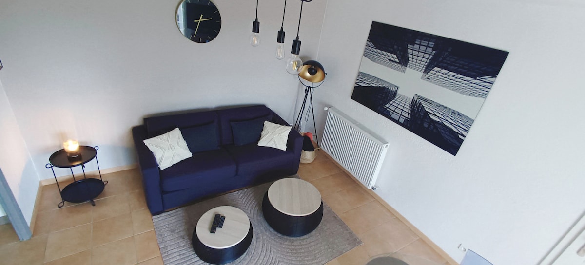 🏡Appartement lumineux et moderne avec déco chaleureuse. Une chambre confortable (lit double, TV), salon convivial avec coin repas et canapé-lit. Cuisine équipée (four, micro-ondes, plaques, vaisselle). Salle de bain avec douche à l’italienne. Wi-Fi haut débit, TV écran plat, clim réversible. Quartier calme et verdoyant, proche commerces, restaurants, transports et A31. Stationnement gratuit à proximité.