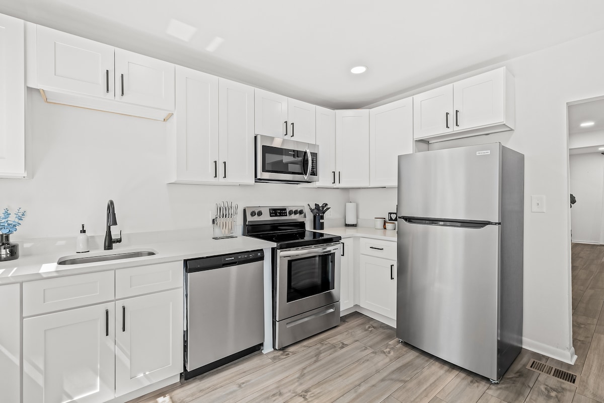 Profitez du confort de la maison dans cette maison récemment rénovée. Bienvenue, détendez-vous et profitez-en ! Cette maison est entièrement axée sur le confort. Du canapé convertible et de la télévision grand écran dans le séjour à la cuisine entièrement équipée avec un four double et un lave-vaisselle, une table à manger extensible (pouvant accueillir jusqu'à huit personnes), des lits confortables et une buanderie au sous-sol, cette maison offre à nos voyageurs le confort de la maison. Un jardin clôturé offre un excellent espace pour les enfants.