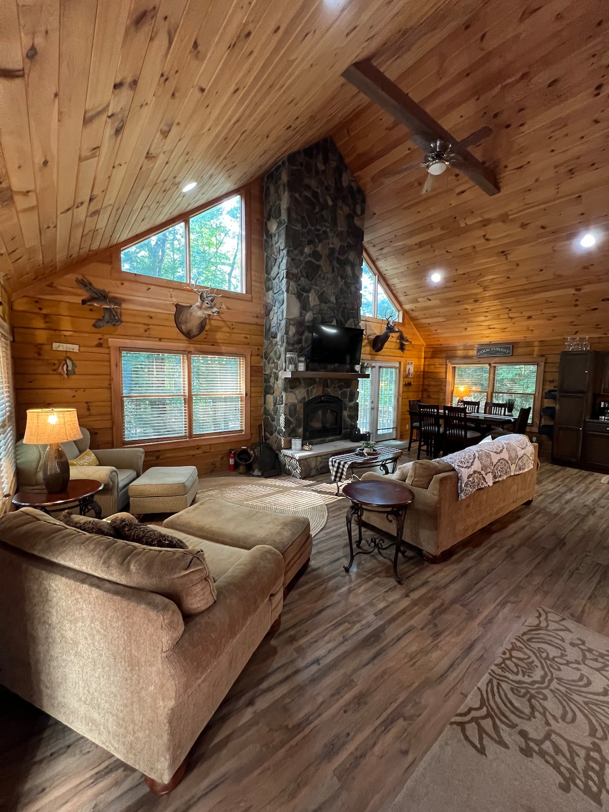 ★☆ À PROPOS DE CE LOGEMENT ☆★ Embarquez pour une aventure en plein air et créez des moments chéris au Hogback Lodge. Libérez l'explorateur qui est en vous en vous réunissant autour du feu de camp, avec du bois de chauffage fourni, pour vous adonner aux s'mores ou savourer une délicieuse soirée à l'intérieur, en vous adonnant à des jeux à la lueur réconfortante du foyer électrique intérieur.
