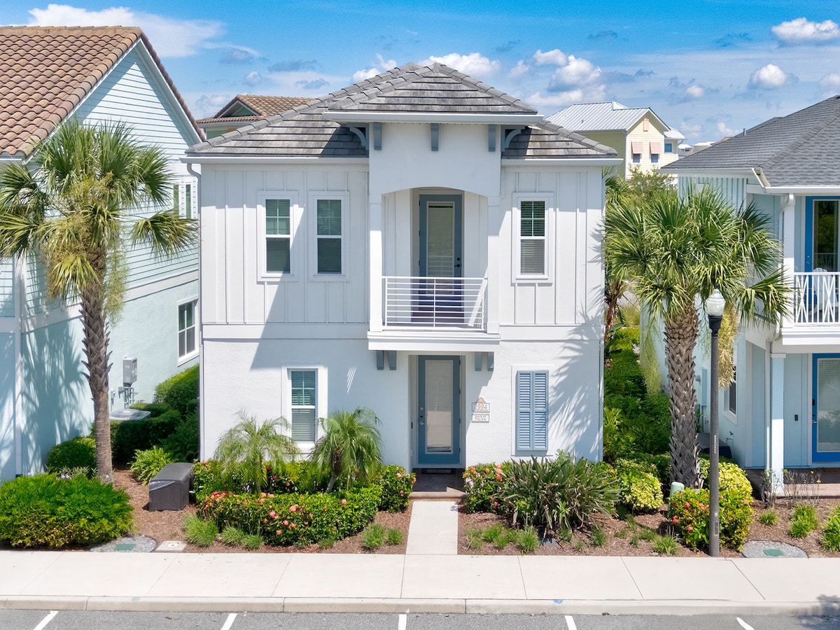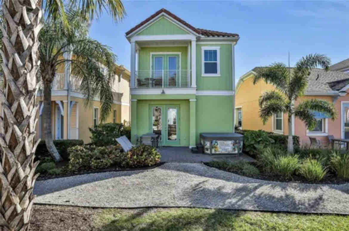 Bienvenue dans notre maison de ville accueillante à Margaritaville ! - Escapade de 4 chambres à Kissimmee, en Floride. - Jacuzzi privé, patio extérieur, balcon privé. - Cuisine et coin repas entièrement équipés. - Téléviseurs à écran plat dans chaque chambre, WIFI haut débit. - Équipements adaptés aux familles, chaise haute, laveuse/sécheuse. - Parking gratuit pour plus de commodité. - À proximité de Walt Disney World et d'Universal Studios. - Options de shopping, de restauration et de divertissement à proximité. - Profitez de paysages pittoresques et de rues bordées de palmiers.