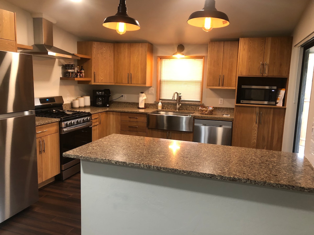 Cette magnifique maison de 3 chambres et 2 salles de bain se trouve sur plus d'un acre dans un quartier calme et isolé à proximité de la ville. Profitez de matinées tranquilles et de couchers de soleil époustouflants sur le porche arrière tout en préparant un merveilleux dîner au barbecue. Visitez notre quartier du centre-ville avec des boutiques, des restaurants et des galeries d'art locales à seulement 3 miles et notre quartier historique de Pinos Altos où vous trouverez de la bonne nourriture, des randonnées et du vélo toute l'année. Internet haut débit, câble Comcast, télévision 70 pouces, cuisine bien équipée et garage pour deux voitures.