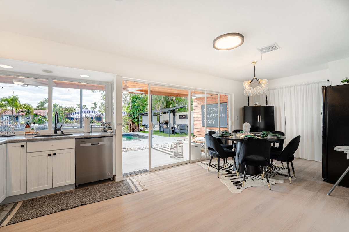 Villa rénovée de 4 chambres près de Hallandale Beach avec nouvelle piscine, jacuzzi et jardin clôturé. 3 chambres ont des lits queen size, et la 4e sert de salle de cinéma/jeux avec baby-foot et canapé-lit. La cabane couverte comprend des ventilateurs, un canapé, une télévision, une cheminée, un barbecue, des chaises longues et un jacuzzi. Intérieur : cuisine équipée, cheminée intérieure, espace de travail, Wi-Fi et streaming. Stationnement sur place, blanchisserie et animaux acceptés moyennant des frais supplémentaires. À proximité du centre commercial Aventura, du parc Gulfstream, du casino Hard Rock et de la promenade d'Hollywood Beach.