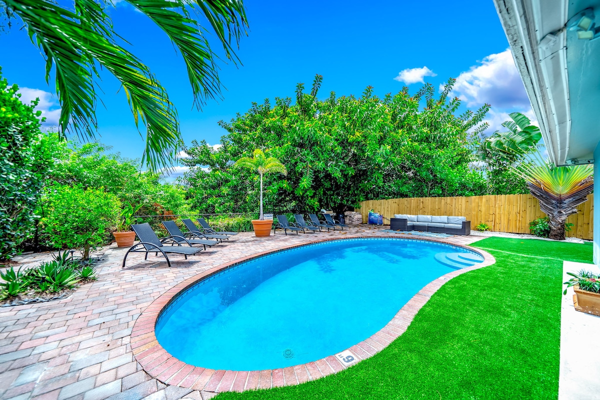 Bienvenue à Fox Garden, foxStays marvel. Cette oasis d'un étage entièrement modernisée et clôturée est nichée au cœur de Fort Lauderdale. ★ Un havre de paix privé avec piscine chauffée, spa et jardin ★ La plage : 10 minutes ★ Las Olas Blvd - 9 minutes Cuisine ★ ultramoderne et entièrement équipée ★ Une belle pergola ombragée avec un ventilateur doux au-dessus qui garde chaque brise une bénédiction Wi-Fi ★ rapide ★ Jusqu'à 5 voitures ★ PAS DE FÊTES ★ Nous accueillons vos animaux à quatre pattes ★ Belle chambre cool en Floride avec baby-foot et jeux !