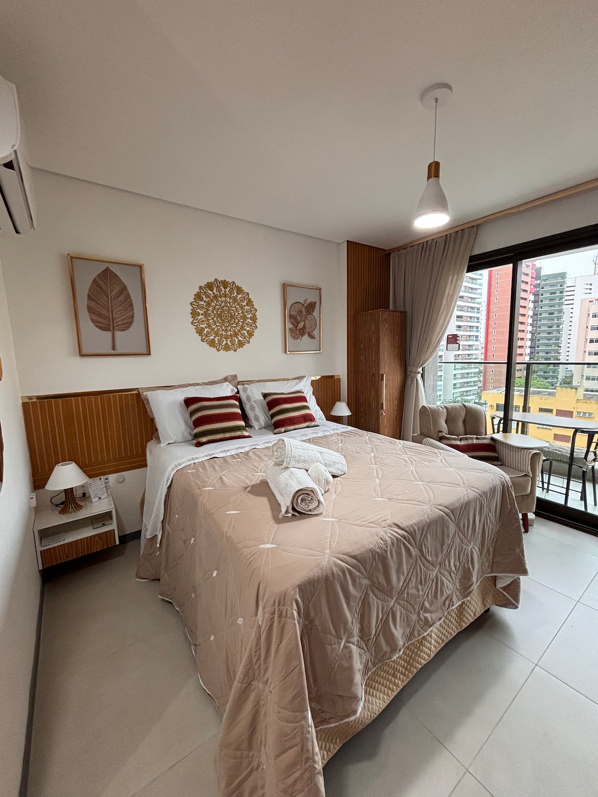 Curta experiência inesquecível em studio elegante, moderno, bem localizado. Oferece Rooftop c/ vista maravilhosa do mar, academia, piscina, espaço gourmet, co-working, lavanderia, bicicletário, café-bar, garagem c/ recarga p/ carros elétricos. Studio bem decorado, confortável, cozinha completa. Ideal para casal, executivos ou famílias com um filho, (tem opção de bicama embutida p/ maior comodidade). Cama bem preparada, Tv a cabo, wi-fi, fogão, air fryer, frigobar e todos utensílios cozinha.