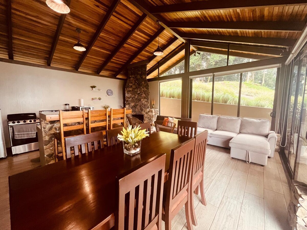 Profitez et détendez-vous dans cette maison de montagne calme et élégante. Vue spectaculaire sur la vallée centrale de San José, le volcan Poás et Barva, le tout en plein cœur d'une ferme de 200 acres. Peut accueillir jusqu'à 10 personnes, parfait pour les familles et les petits groupes. Entièrement équipé avec cuisine de chef, sauna finlandais, cheminée, foyer et barbecue. Plus de 20 acres de réserve forestière et plus de 10 000 de routes et de sentiers pour profiter de promenades calmes et paisibles en pleine nature.