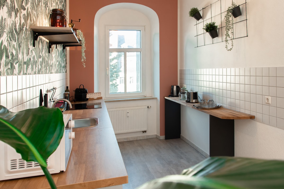 EDLER WOHNRAUM Votre séjour parfait à Schloßchemnitz vous attend ! Emplacement central, environnement calme – et vous pouvez vous enregistrer de manière flexible via l'arrivée autonome. Attendez-vous à un appartement modernisé avec une nouvelle cuisine, un salon spacieux et une salle de bains élégante avec douche à l'italienne. Dormez profondément dans le lit à ressorts confortables (180x200 cm), utilisez le Wi-Fi rapide pour travailler ou vous détendre. Votre voiture ? En toute sécurité dans le garage souterrain ! Réservez dès maintenant pour vivre une expérience inoubliable !