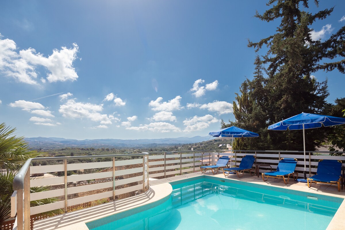 Détendez-vous en famille dans ce logement paisible. Bezari pool house, situé dans les dépendances Francesciennes, à 4 km de la mer(plage de Gerani) et à 12 km du centre de Réthymnon. Il s'agit d'une villa en pierre de 1800,entièrement rénovée, avec une piscine qui conserve les éléments architecturaux du lieu, avec ses différents niveaux et ses arches. Il offre une vue illimitée sur la plaine, car il est situé au point le plus élevé du village.