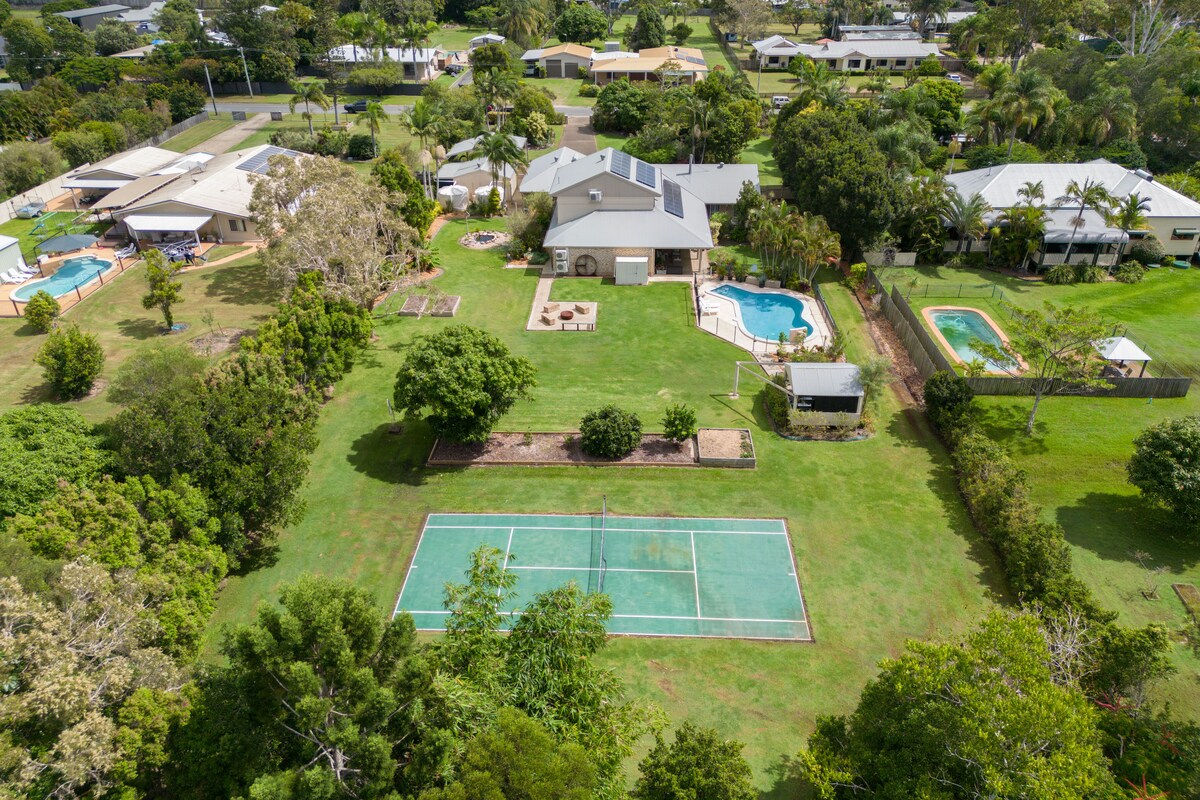 Profitez d'une expérience élégante dans ce logement central. À Bundaberg Dream, vous pourrez profiter d'une maison magnifiquement conçue qui dispose de 3 grandes chambres, de deux nouvelles salles de bains modernes et d'une cuisine entièrement fonctionnelle avec lave-vaisselle, four à micro-ondes et machine à café Nespresso. Vous y trouverez également une cheminée confortable et une piscine rafraîchissante. Il y a deux salles à manger, un réfrigérateur à vin et un barbecue au gaz. Le logement est climatisé et dispose de ventilateurs de plafond partout. Comprend des jardins magnifiquement entretenus.