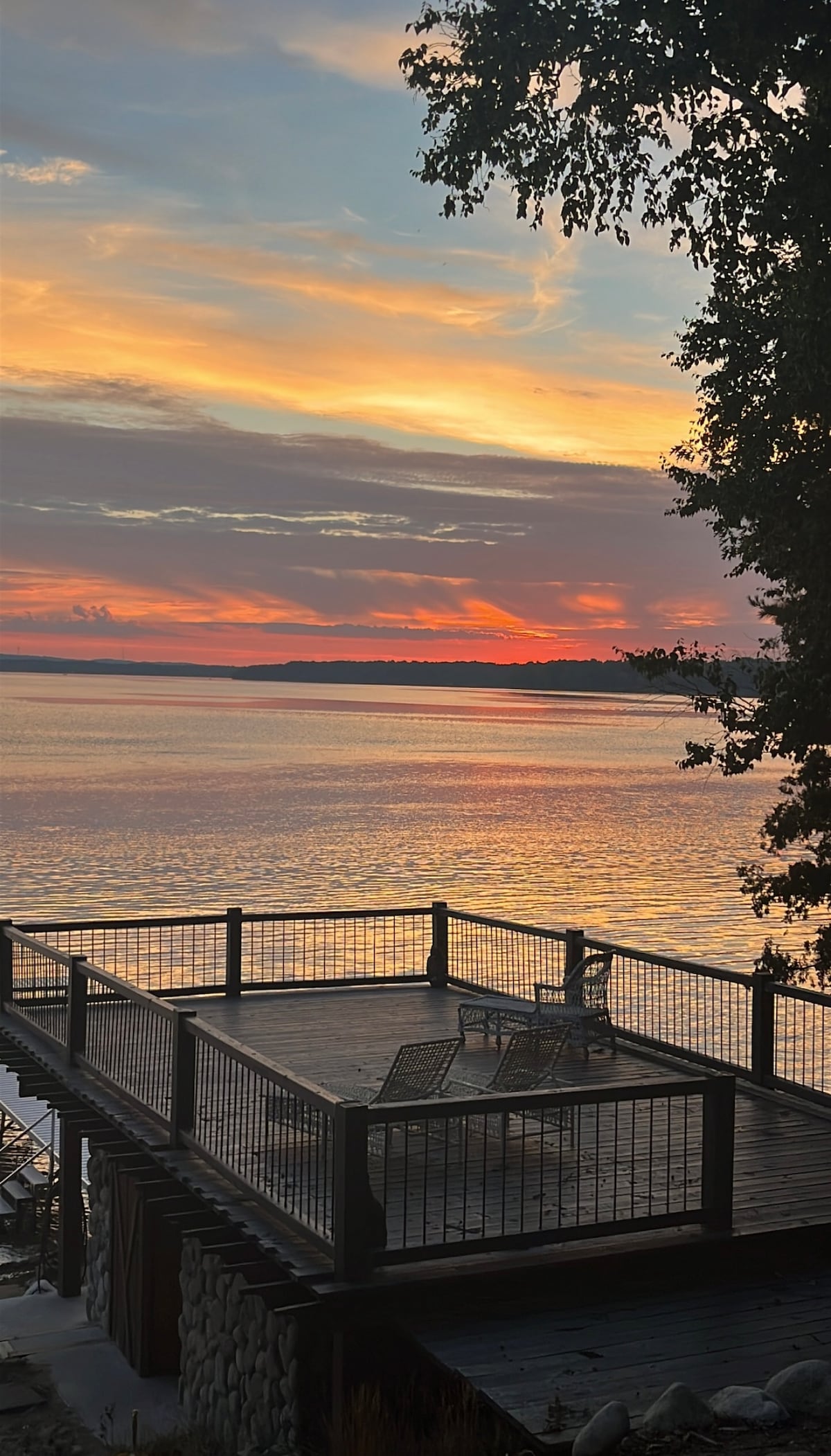 Gorgeous views of Mackinac Straits, Bridge Lake Huron and sunsets from this condo. This nicely furnished condo room has its own private entrance, deck & full kitchen, king size bed, queen sofa sleeper, two full baths, WIFI and a 60" TV. Applewood Condo is situated on a bluff surrounded by the Stonecliffe Mansion, the acclaimed Grand Hotel Woods Restaurant with Bobby's Bar, golf course and Sunset Rock. Professionally cleaned. Amazing sunsets!