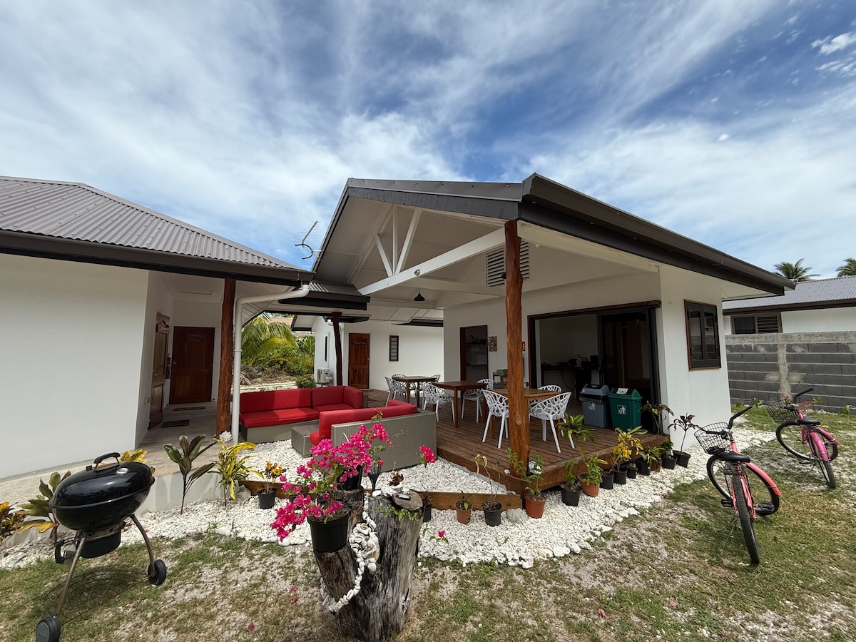 Les Bungalows Tema'e Beach se situent sur un grand terrain bord de mer de 1800M2 à Tema’e, à 5 min de la plage publique de Tema’e, à 10 min du quai des ferry et à 5 min du Golf. Les 3 bungalows sont identiques et séparés par de petits jardins. ils peuvent être loués ensemble ou séparément. Chaque bungalow est d’une superficie de 83M2 avec 30m2 de terrasse, et peux accueillir 6 personnes en couchages. Composé de 3 chambres climatisées avec des lits en 160x200cm et 2 salles de bain, piscine.