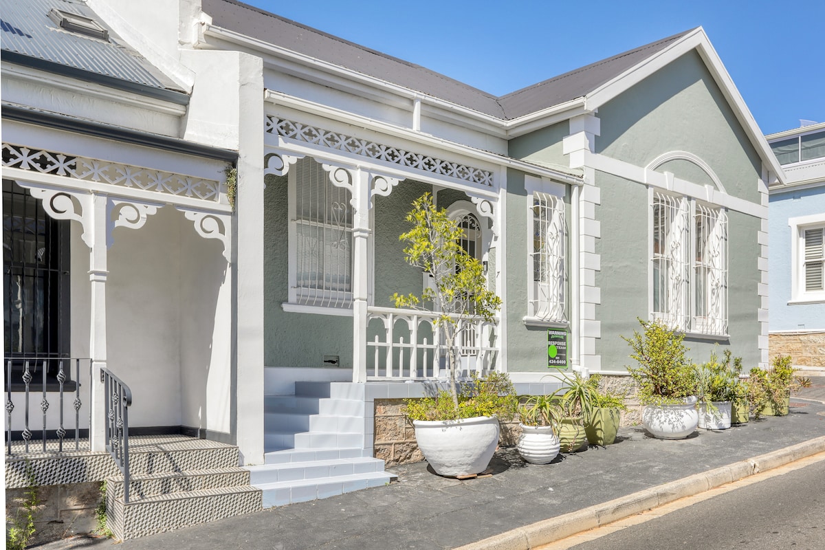 Juste au-dessus de la promenade de Sea Point, ce magnifique chalet victorien a un intérieur rénové ultra-élégant. La mezzanine de style loft sert de troisième chambre ou de studio de yoga ou de bureau, ou tout simplement d'espace paisible pour se retirer. Les cafés et restaurants de Sea Point sont à quelques pas, et le meilleur des plages du Cap se trouve à proximité. Cour ensoleillée pour se détendre et soirées sur le stoep, tandis que la cheminée vous garde au chaud. 2 lits. Canapé-lit supplémentaire dans la mezzanine. Stationnement gratuit et sûr dans la rue. UPS