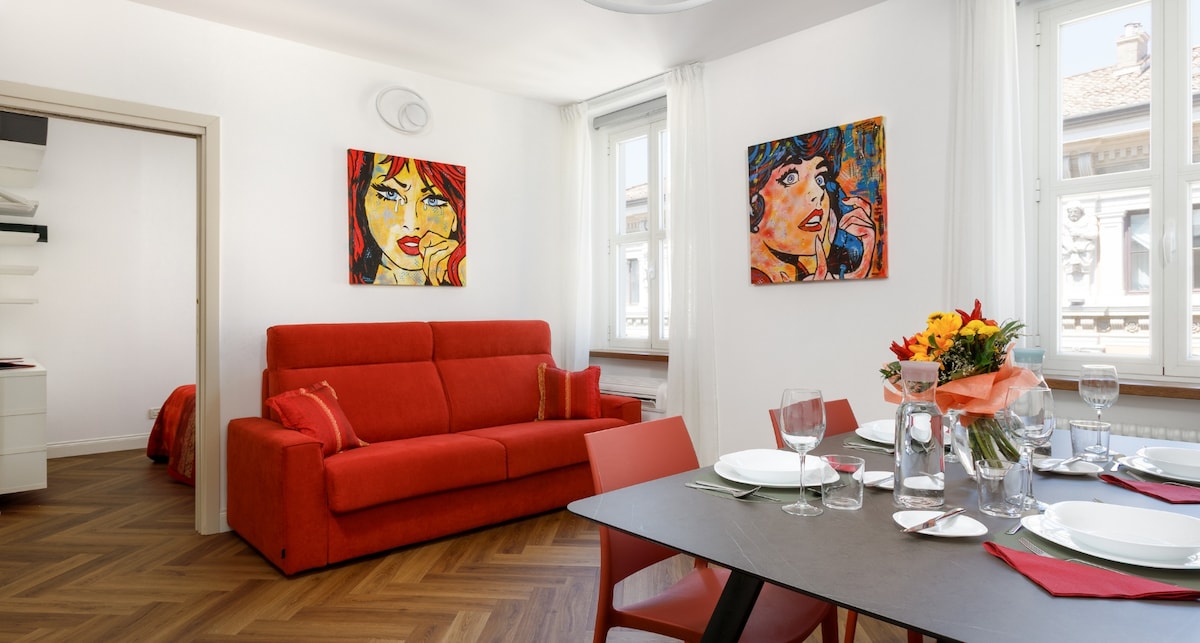 Situé au cœur de Trieste, en plein cœur de la vie urbaine, à quelques pas de la célèbre Piazza Unità d'Italia et à proximité de deux symboles de la ville : le bâtiment de la Bourse et l'opéra Giuseppe Verdi, l'appartement est idéal pour une escapade romantique à deux.
