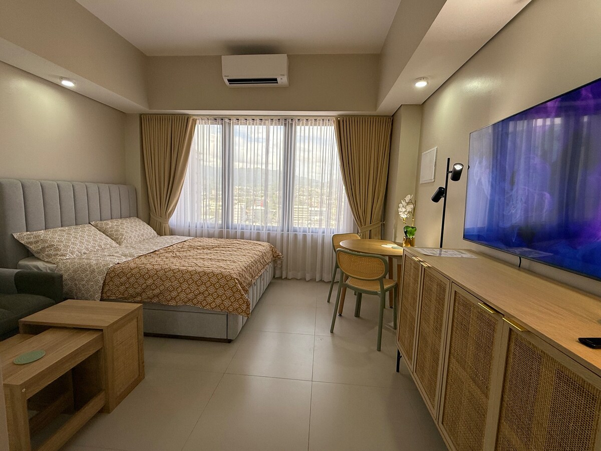 Un studio confortable et soigneusement meublé près des principaux centres commerciaux et d'affaires de Cebu - IT Park et Ayala Center ! Que vous visitiez Cebu pour les affaires ou les loisirs, vous êtes sûr d'être accessible et à portée de vos destinations. Vous vous sentirez immédiatement chez vous et serez accueilli par la vue magnifique sur le lever du soleil, les collines et les fairways. Et avec l'Internet par fibre optique, restez toujours connecté, que ce soit pour le travail ou Netflix. Nous serions ravis que vous découvriez Cebu et que vous vous sentiez comme chez vous.