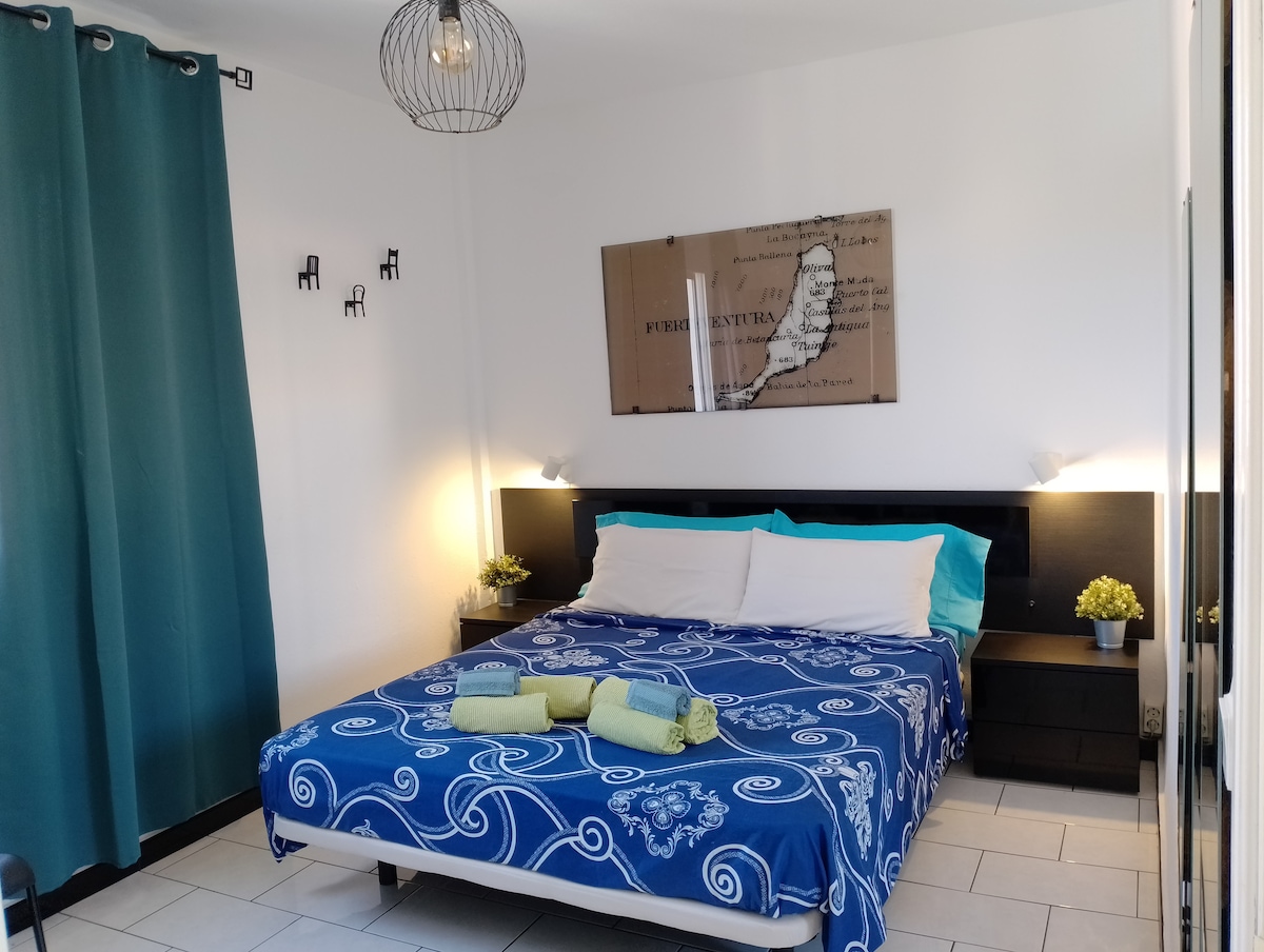Appartement très lumineux avec Wifi,SmartTv(Netflix et Première Vidéo), dans l'une des meilleures zones de Corralejo,dans le centre. Tous les restaurants à pied, Hyperdino au coin de la rue, postes, banques , bazar, imprimeries pour imprimer des documents , station-service, cafés , aire de jeux, terrain de football, il n'est pas nécessaire de prendre la voiture pour rien , il y a même une petite plage à seulement 100 m. Maison spacieuse, propre, 1 canapé-lit, grand bac à douche ,2 lits doubles de 140 en lit superposé avec télévision.