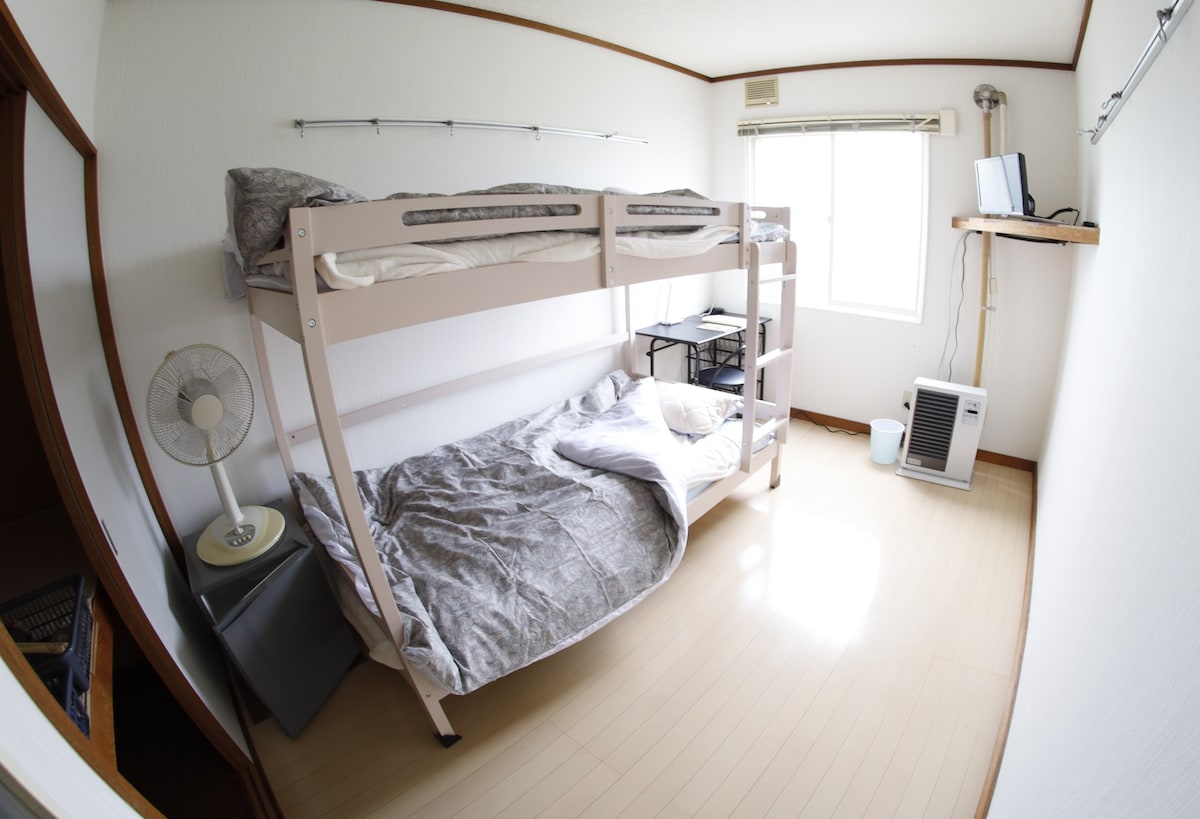 Chambre 5 avec lits superposés. « Nipopo », un établissement d'hébergement privé qui respire l'amour de la ville de Fukagawa.