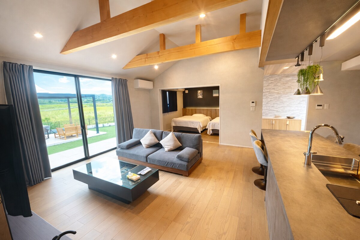 [Ouverture en mars 2025] « Voyager avec des enfants, c'est difficile... ! » Vous êtes-vous déjà posé cette question ? En tant qu'hôtes, nous avons également des enfants de 3 et et an, nous comprenons donc très bien ce sentiment. Même lorsque nous partons en voyage « Et si on cassait quelque chose dans la chambre ? » « Ne vont-ils pas courir partout dans le logement et déranger les autres voyageurs ? » Nous sommes inquiets. « Mais je veux que mes enfants vivent des expériences dans la nature... ! » Nous avons créé un concept d'« hébergement adapté aux enfants » qui permet aux voyageurs avec de jeunes enfants de séjourner en toute tranquillité. La ville de Takashima, dans la préfecture de Shiga, où se trouve l'auberge, est un lieu riche en nature. Ces dernières années, la jeune génération s'y installe en raison de son accès facile à Kyoto et Osaka et de sa richesse naturelle. À 5-10 minutes en voiture de notre établissement, vous trouverez de nombreux endroits où vous pourrez profiter de la nature tout au long de l'année, comme les aires de jeux du lac Biwa, le parc d'expériences agricoles Makino Pick Land et la station de ski Makino Kogen ! Nous avons aménagé les chambres et les équipements de l'auberge en nous basant sur le critère de « séjour en toute tranquillité », car nous sommes parents. Nous sommes heureux de vous aider à vous détendre un peu dans notre auberge, après des journées difficiles où vous ne pouvez généralement pas quitter vos enfants des yeux.