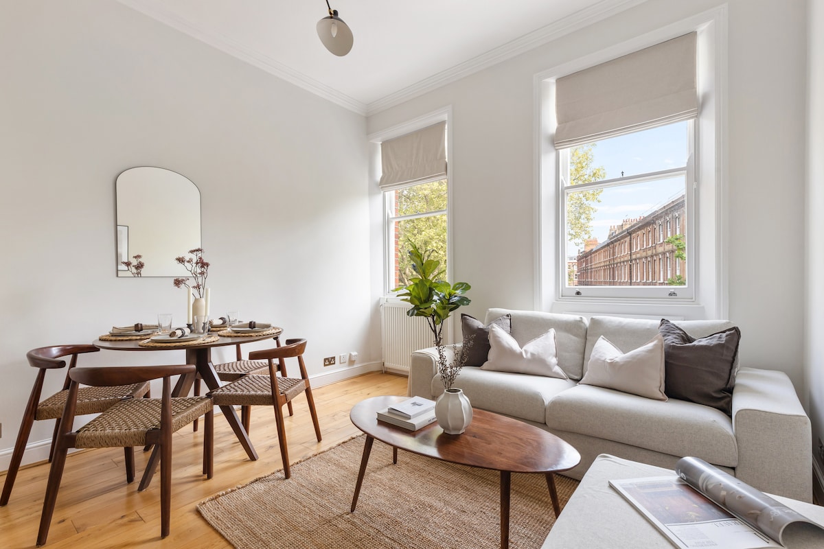 Élégant appartement Chelsea d'une chambre avec sols en chêne, intérieurs apaisants, cuisine équipée et accès à un jardin commun calme. À seulement 2 minutes de King 's Road et à deux pas de la galerie Saatchi, des musées et du Chelsea Physic Garden. Paisible et élégant avec un double vitrage dans la chambre et le salon pour un séjour paisible Wi-Fi ultra-rapide, télévision connectée et transports en commun très pratiques via les stations South Kensington et Sloane Square. Veuillez enlever les chaussures à l'intérieur Une base londonienne parfaite pour les couples ou les voyageurs seuls.