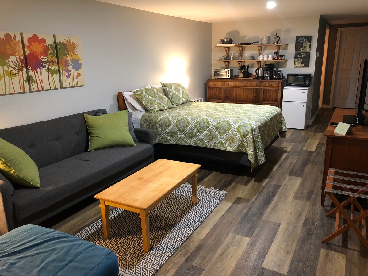 Une suite privée avec jacuzzi conçue pour deux, idéalement située près de Hopewell Rocks le long de la route panoramique 114 entre Moncton et le parc national Fundy. Explorez la côte de Fundy, assistez aux marées mondialement célèbres, faites de la randonnée sur les sentiers côtiers et visitez Alma. Parfait pour les couples à la recherche d'une escapade au calme. Détendez-vous à l'intérieur avec un lit queen size et une cuisine complète, puis détendez-vous dans votre jacuzzi privé et couvert. Entrée privée et parking dédié inclus. Des questions ? Envoyez-nous un message !