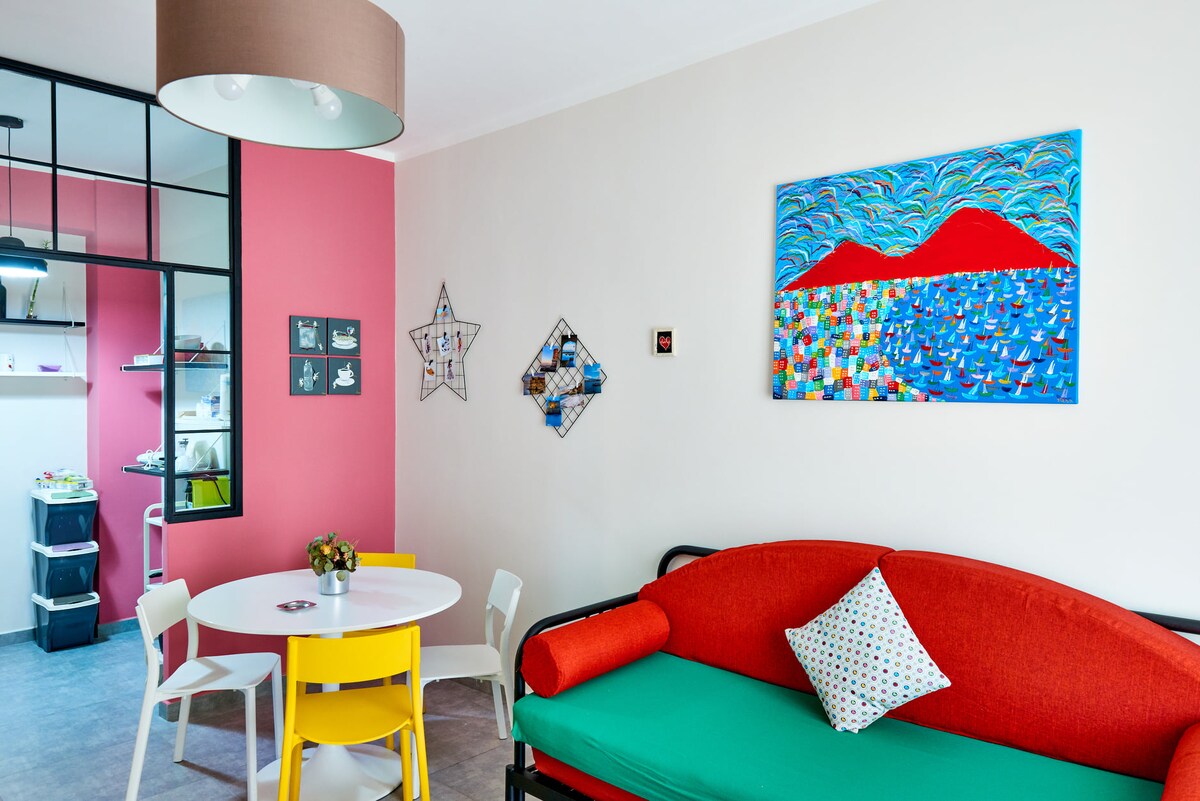 Appartement confortable avec vue sur la mer récemment rénové dans le quartier de Chiaia à quelques pas de 2 funiculaires et du métro qui mènent au centre historique, au Palais Royal, au Théâtre San Carlo, à la Chartreuse de San Martino et au Château Sant'Elmo. À pied, vous rejoignez également le front de mer - bars et pizzerias traditionnels sur la mer - Castel dell’Ovo, Maschio Angioino, les quartiers espagnols emblématiques et la célèbre fresque murale Maradona. L’enregistrement en libre-service est disponible via une boîte à clés et une connexion Wi-Fi dans la salle à manger.