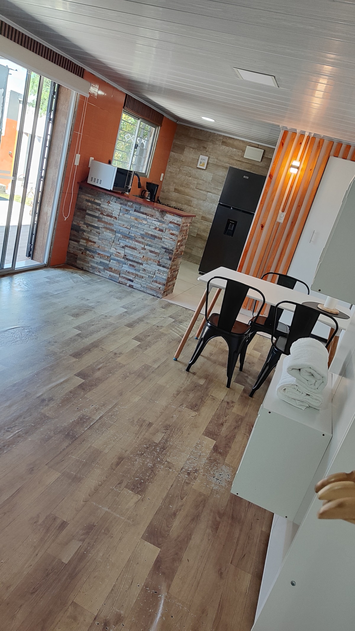 Apartamento monoambiente independiente al costado de nuestra casa. (dentro del mismo predio). Se puede acceder con vehículo hasta la puerta del apartamento. Estacionamiento dentro del predio, al aire libre incluido en el precio.
