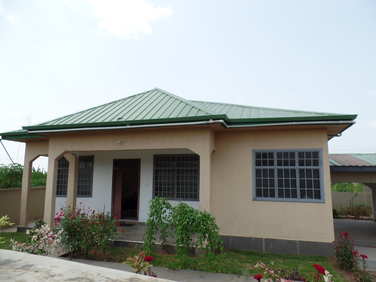 Pourquoi un hôtel alors que vous pouvez avoir toute cette maison de 4 chambres pour vous et/ou toute la famille. Akwaaba ! ! ! Bienvenue... en entrant dans cette maison, vous serez accueillis dans un jardin de cour avant composé d'arbres fruitiers surplombant les montagnes de l'Aburi. Un endroit unique pour profiter de la campagne, comme des vacances ou des affaires. Vous rentrerez chez vous dans une atmosphère calme et relaxante après la journée bien remplie de visites et/ou d'affaires de la ville. Lien de visionnage vidéo fourni sur demande.