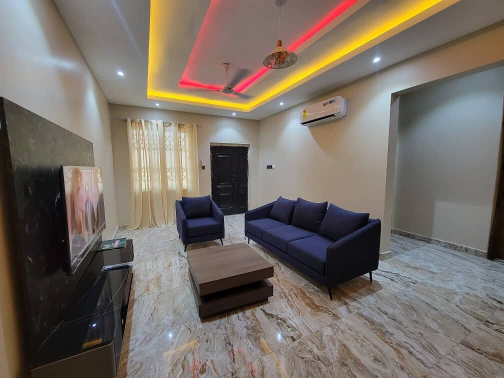 Détendez-vous en famille dans ce logement propre, spacieux, sécurisé et indépendant de 2 chambres. Situé dans un quartier pratique de la ville, à proximité du centre commercial Achimota. Eau chaude Décoration moderne. Sécurité 24h/24 et service de conciergerie avec un personnel compétent et sympathique pour des recommandations sur les endroits à visiter. L'appartement est livré avec tout le confort dont vous avez besoin pour un séjour sans stress. Entièrement climatisé pour votre confort et vraiment une maison loin de chez vous. Appartement 1 chambre à coucher également disponible.