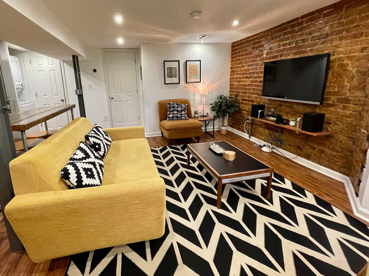 Sous-sol anglais moderne et coloré 1 chambre près de H St.