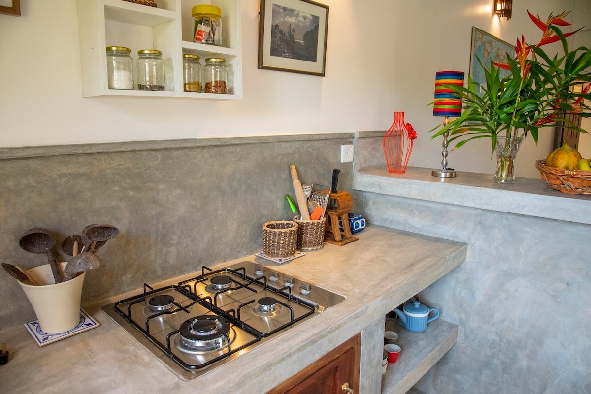 L'appartement du deuxième étage de notre villa offre aux voyageurs un espace paisible pour se détendre après une journée sur la plage ou explorer la belle côte sri-lankaise. L'appartement dispose de deux salles de bains séparées (chacune avec salle de bains privative) et d'une cuisine/salle à manger fonctionnelle à usage privé. La cuisine est entièrement équipée et comprend un réfrigérateur, un four, une cuisinière et des appareils électroménagers nécessaires. Depuis le balcon, les voyageurs profiteront de la vue sur la cime des arbres de la jungle et pourront même admirer les singes locaux.