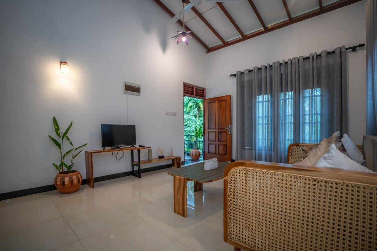 Détendez-vous dans notre confortable villa de 3 chambres (2 chambres climatisées + 1 chambre non climatisée) à Galle, entourée d'une végétation luxuriante.À seulement 15 minutes en voiture du fort de Galle et des plages, et à 5 minutes en voiture des supermarchés, restaurants, hôpitaux, pharmacie, faculté de médecine et transports en commun. Cette villa offre un mélange parfait de confort et de commodité. Profitez d'un espace de vie lumineux et confortable et d'une cuisine entièrement équipée pour votre séjour. Idéal pour les familles, les couples, les voyageurs en solo et les étudiants en médecine à la recherche d'une escapade sereine.