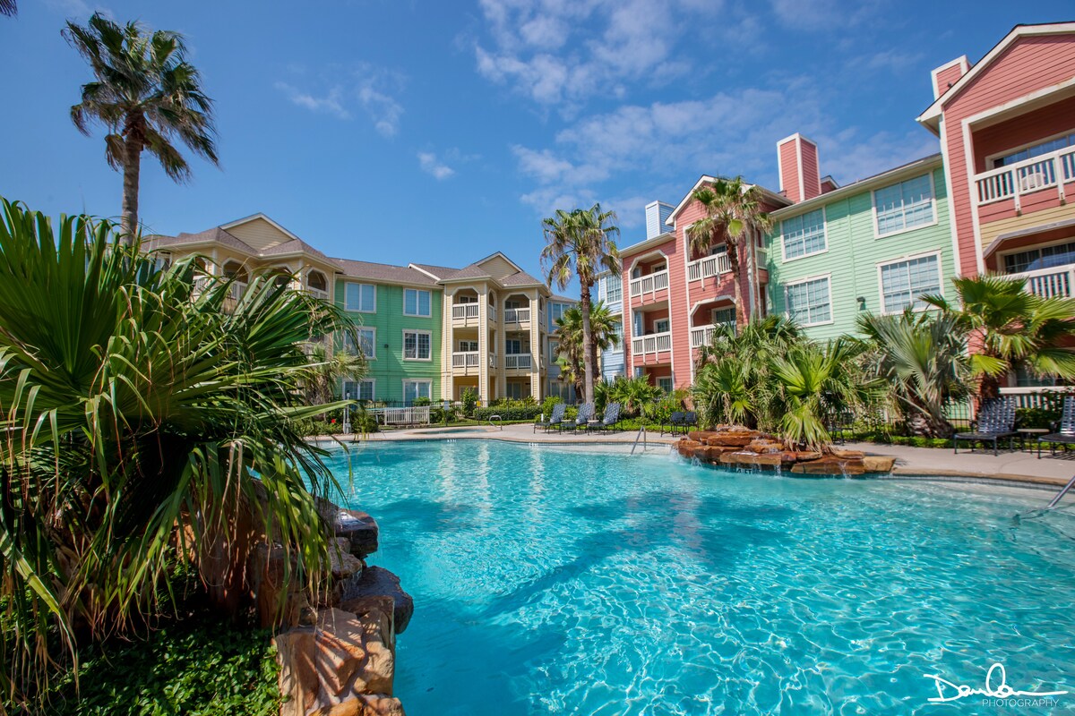 Cet appartement au dernier étage avec 1 chambre et 1 salle de bain est l'endroit idéal pour une escapade pour vous et/ou vos proches, y compris vos amis à fourrure ! Que vous veniez dans le Sud pour l'hiver (les touristes hivernants et les Texans hivernants sont les bienvenus !), que vous restiez quelques jours avant une croisière ou que vous partiez pour une escapade romantique, ce logement ne vous décevra pas ! Cuisine complète et canapé-lit King Size. Situé dans le magnifique complexe Maravilla Condos sur Seawall Blvd avec des équipements de villégiature haut de gamme et la plage juste en face de la propriété.