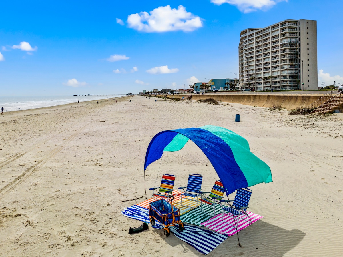 Cette retraite confortable et impeccable se trouve à seulement 1 pâté de maisons de la plage et de Pleasure Pier, avec des restaurants, des manèges et le Seawall à quelques pas. Avec les défilés de Mardi Gras commençant en février, c'est l'emplacement idéal sans tracas de stationnement ! Des lits confortables, une douche incroyable, une cuisine entièrement équipée et des extras bien pensés en font un endroit idéal pour les familles, les couples ou les séjours avant croisière.