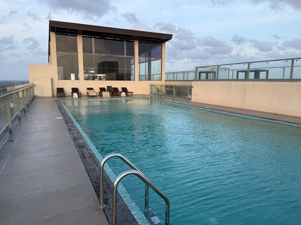 Magnifique appartement flambant neuf au cœur de Colombo. Profitez de vues spectaculaires depuis cet appartement de luxe. Environnement paisible bien que situé au centre. Avec la climatisation, les ventilateurs, la cuisine entièrement équipée, les matelas super confortables, le Wi-Fi, la télévision, Netflix et les équipements, c'est un endroit confortable pour séjourner. Salle de sport, piscine, aire de jeux pour enfants, centre d'affaires sur place. Café-barista, boulangerie, buanderie et supermarché à votre porte. À distance de marche des restaurants, bars, centres commerciaux et autres attractions. Sécurité 24h/24.