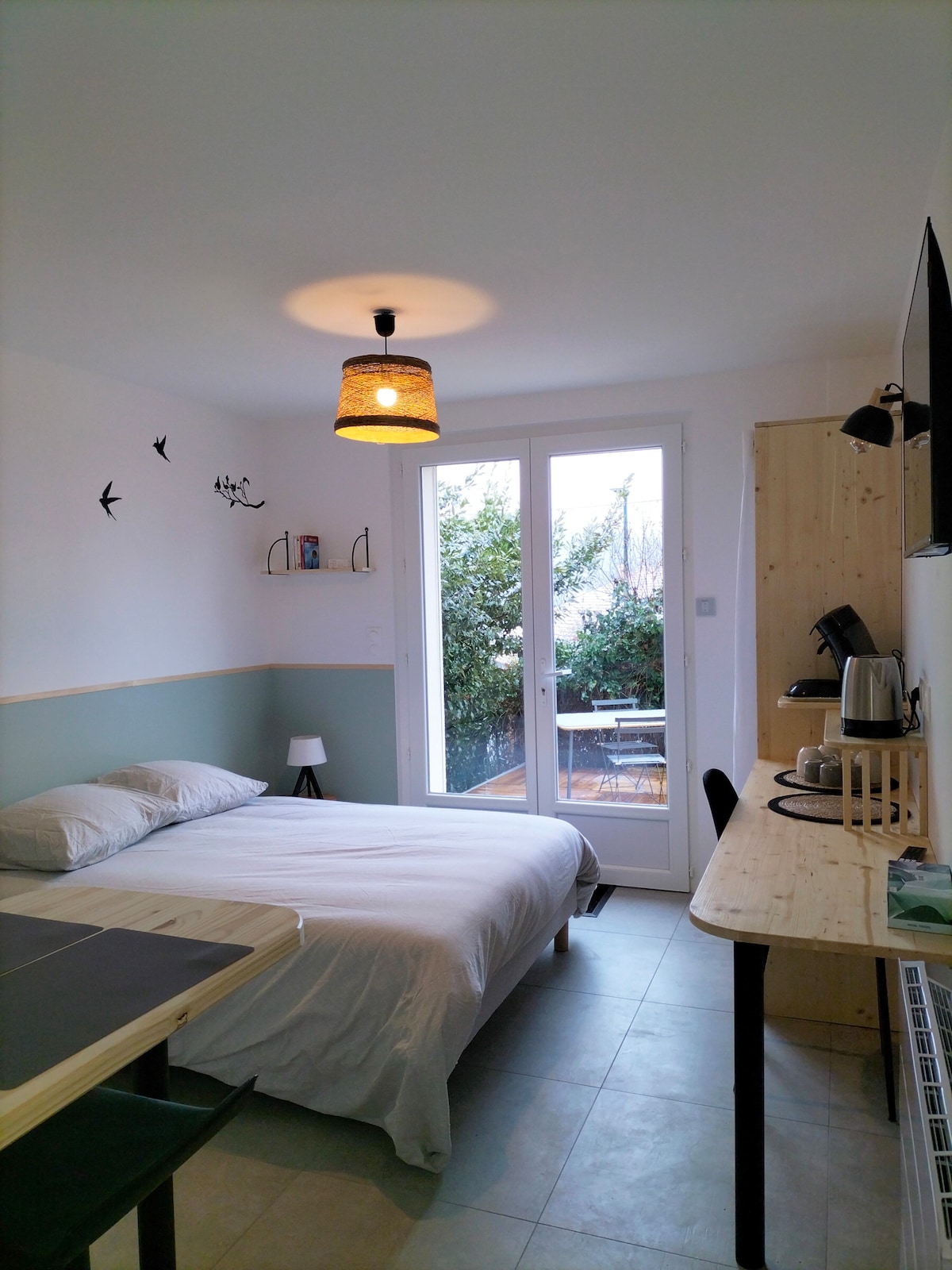 Appartement (37m²) + terrasse avec canapé (7 m²) situé en rdc de villa / entrée indépendante / exposition sud / proche du centre ville. Cuisine équipée, chambre séparée par une verrière / place de stationnement devant le logement. TV connectée Amazon Prime. A proximité : supermarchés (Lidl Auchan) -boulangerie- pharmacie - piscine avec hammam sauna - parc- bus de ville gratuits. Idéal pour 2 adultes, voyageur d'affaire, motards Draps / serviettes fournis.