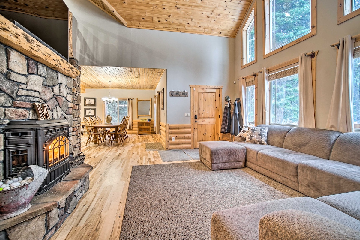 Emmenez toute la famille dans le chalet spacieux en pleine forêt. À seulement 55 miles de Boise ! Profitez de la piscine géothermique pour vous détendre après avoir joué au golf au Terrace Lakes Resort à proximité. Les enfants adoreront la chambre à coucher remplie de jeux et il y a une autre salle de jeux dans le garage détaché avec ping-pong et jeu de palets. Tout ce dont vous avez besoin pour profiter de vos vacances en famille. Venez voir pourquoi nous aimons tant les sources de Sam !