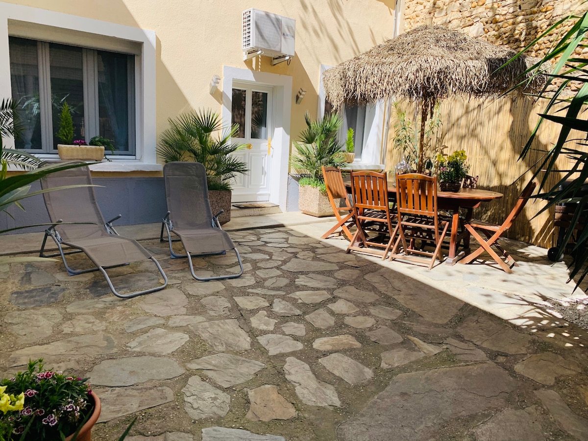 Maison de village à l'intérieur d'une cour ombragée, pièce à vivre, cuisine, 2 chambres, salle d'eau, les draps et serviettes sont fournis (ainsi que : le café, sucre, condiments de cuisine, torchons de vaisselle, et produits d'entretiens) vous disposez d'une terrasse avec salon de jardin, barbecue, le Spa extérieur est disponible du 15 avril au 15 octobre (supplément de 10 euros), location de vélos (5 euros la journée) la maison se trouve à proximité du centre de Saint-Gilles et des commerces.