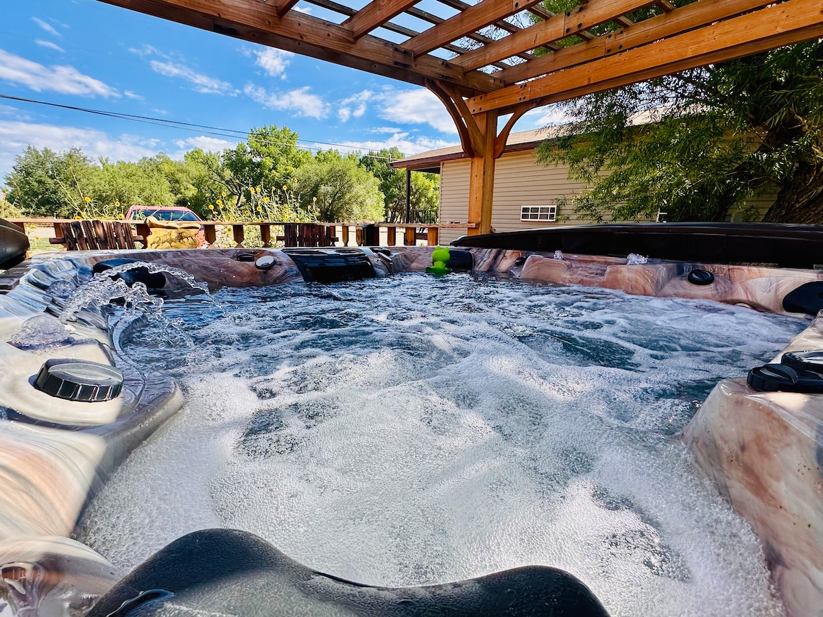 Évadez-vous dans un studio paisible sur notre ferme en activité le long du fleuve Colorado, à quelques minutes des cafés et des restaurants de Silt, Colorado. Profitez d'un sauna privé, d'un accès à la rivière, de la pêche au large du quai et d'un cadre champêtre tranquille entouré de chèvres, de poulets et de notre vache laitière Jersey. Le mélange parfait de détente, de nature et de commodité.