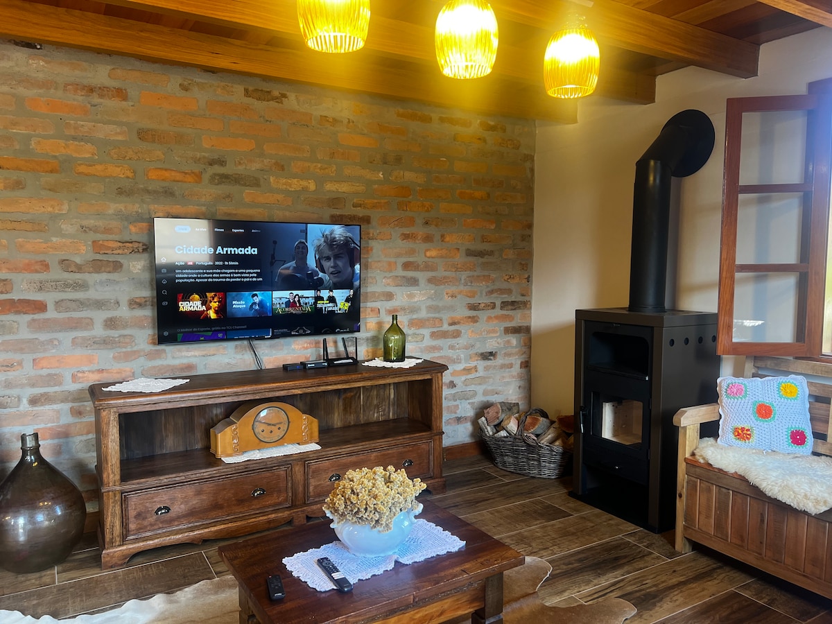 Cabane rustique spacieuse et confortable. Située à proximité de la gare, de la vallée des vignobles et des chemins de pierre, où vous pourrez déguster les principaux vins et vins mousseux des vignobles et profiter de la riche offre gastronomique de la région et profiter de nombreuses autres attractions que seule la Serra Gaúcha offre.