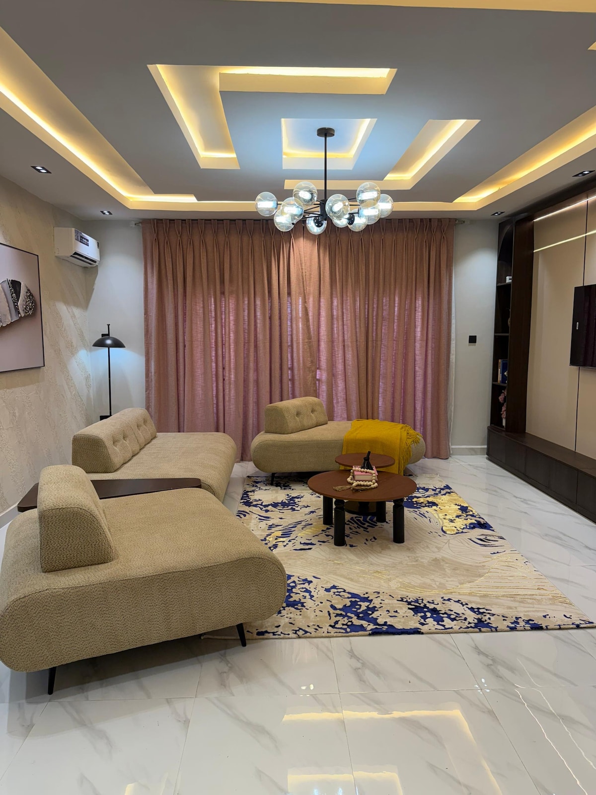 Royalty Luxury Serviced Apartment a été concis et conçu comme une maison pour les Royals. C'est un endroit calme, unique, élégant et accueillant avec un mobilier exquis pour donner une sensation de confort. Situé dans un domaine serein sécurisé et fermé et offre un accès pratique à toute la partie d'Abuja et de ses environs. 247 électricité avec systèmes solaires/onduleurs, wifi fibre optique, ventilateur, cuisine moderne entièrement équipée, sécurité armée, quartier calme. Table de billard standard, balançoire de détente, piscine privée et lave-linge.