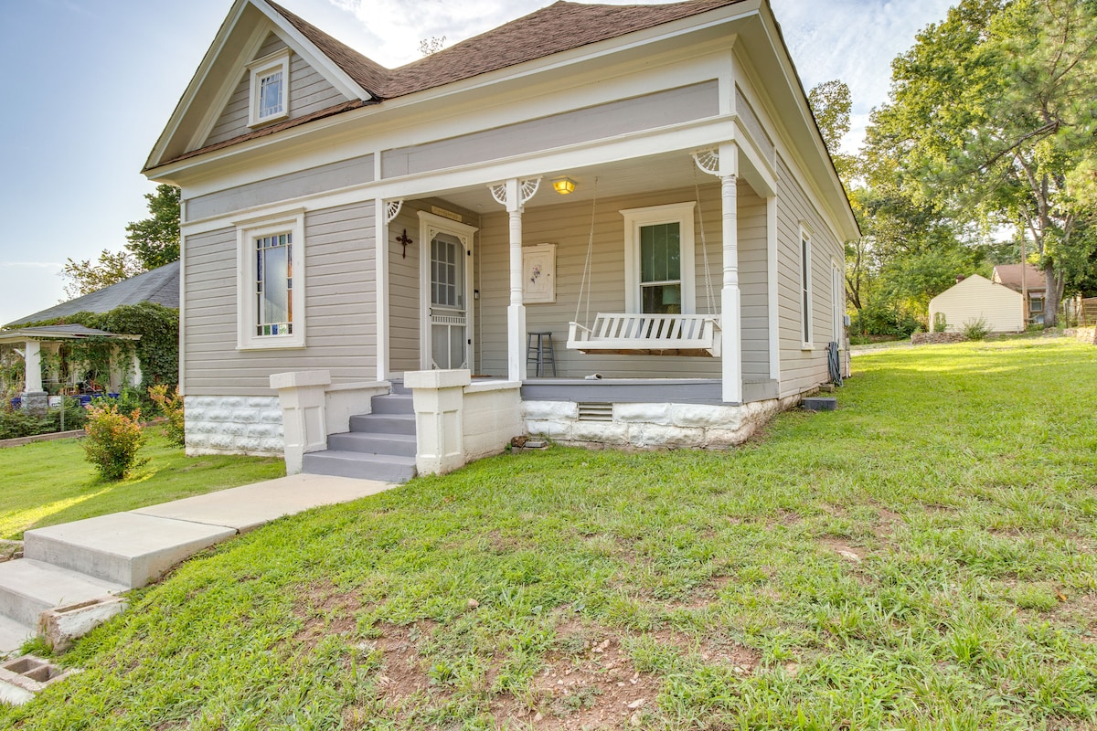 Escape to Northern Arkansas and book this 2-bed, 2-bath Cotter vacation rental. Originally built in 1910, this fully restored cottage features a cozy living area with a Smart TV, a well-equipped kitchen, and access to the area’s top outdoor recreation, ideal for fishermen and families alike! Sip your morning coffee on the porch, then walk to Big Springs Swimming Hole and make a splash with the kids! Hoping to fish? Cast a line at Rim Shoals. Wind down back home with a barbeque on the gas grill.