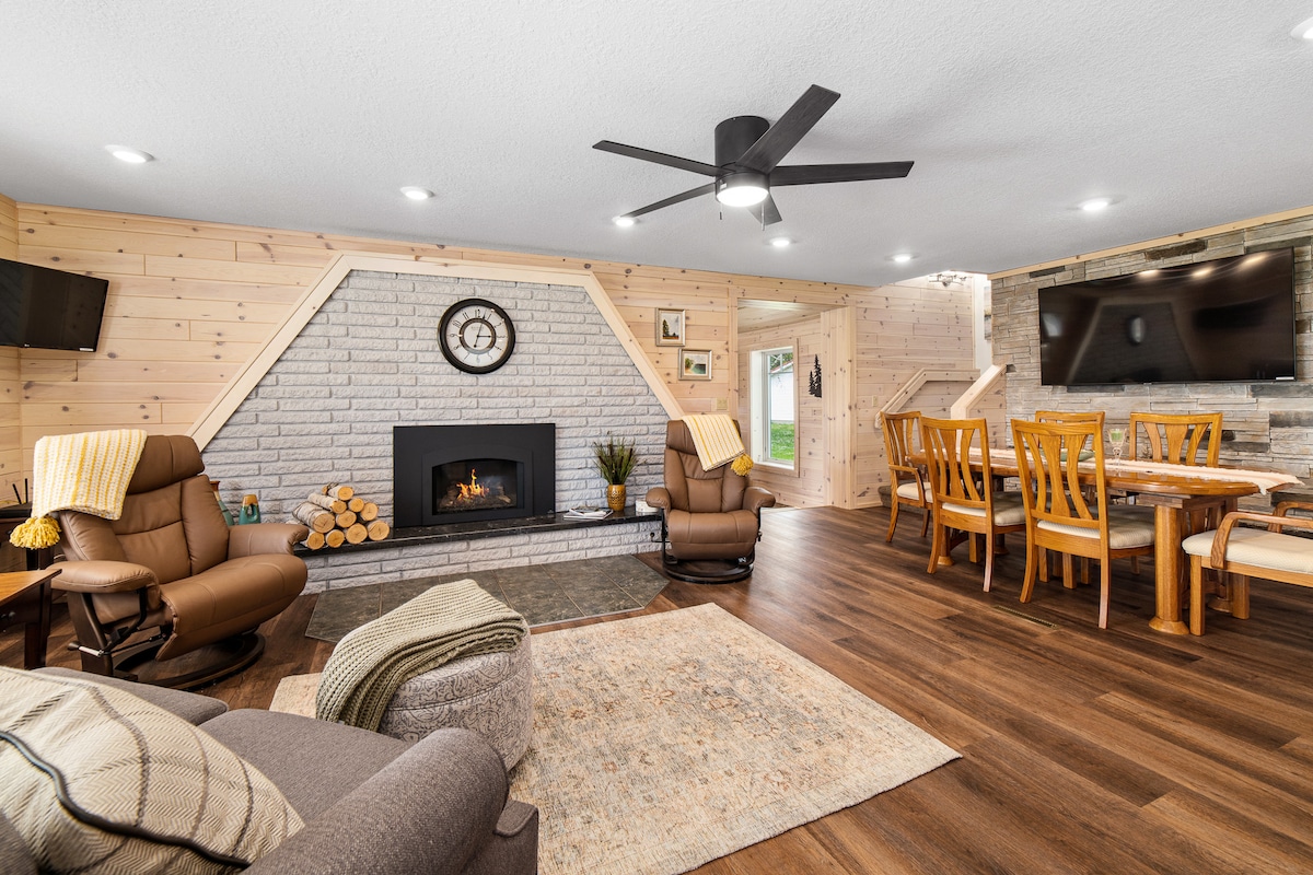 Large family-friendly luxurious cottage sitting right on the shores of private Five Lakes w/ all seasons breathtaking views & clear water. Enjoy swimming, fishing, kayaking, and ice fishing on-site. Minutes from downtown attractions, golf resorts, snowmobiling, snowshoeing, and a short drive to Boyne Mountain Ski Resort & up north attractions. Cozy bedrooms, modern kitchen, dining room, comfortable living room, large deck, fire pit, gas grill, Billiard table & HOT TUB with gorgeous lake viewing.