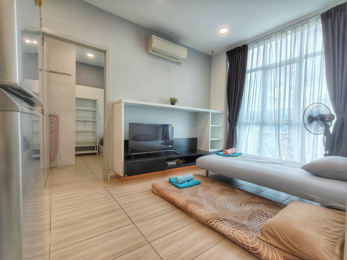 Notre toute nouvelle suite confortable est parfaitement située au cœur de Penang avec un accès facile aux attractions touristiques locales. Des restaurants japonais/coréens et un dépanneur 7-11 sont juste en dessous de notre maison ! Nourriture locale, KFC et Pizza Hut sont à moins de 5 minutes à pied ! Nous fournissons • Excellents services d'accueil • Lever du soleil et vue sur la ville • Divertissement PS3 et Netflix ; • 1 parking privé • WiFi 100 Mbit/s ; • Vue sur la piscine à débordement • Entièrement climatisé. Si vous aimez un endroit calme et confortable dans cette ville animée, n'attendez pas, réservez maintenant !!!