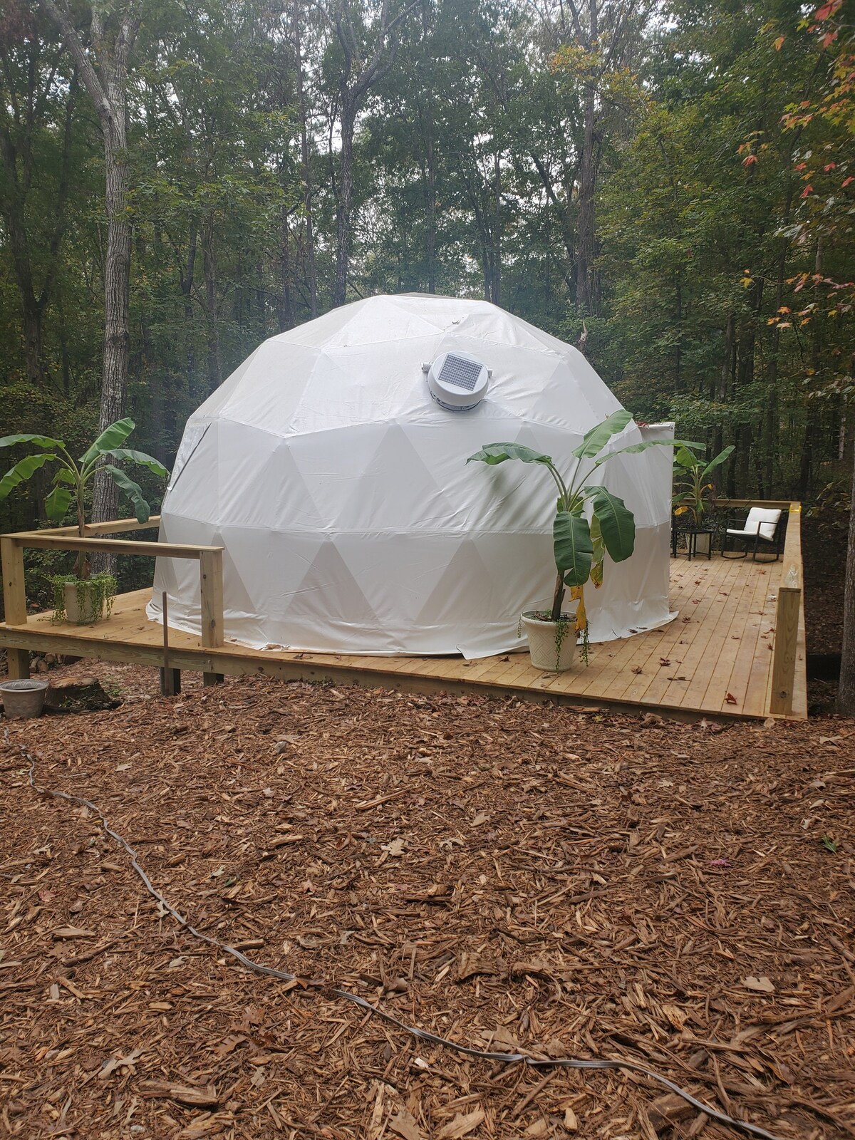 Dôme géodésique dans une forêt de 22 acres avec douche extérieure et baignoire