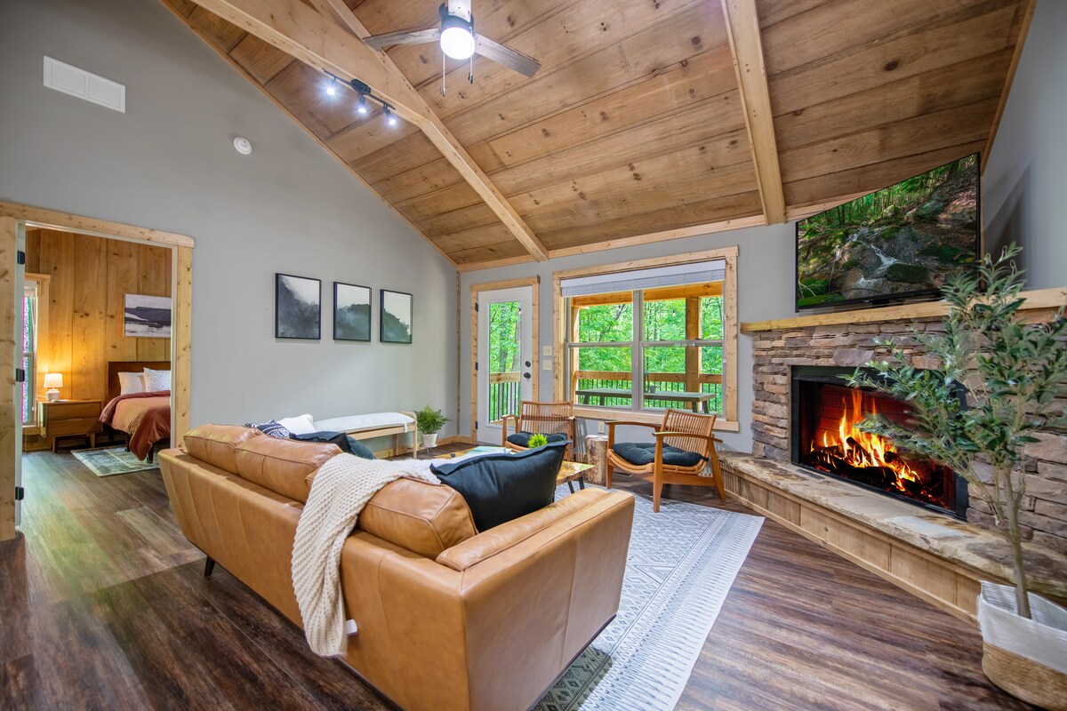 « Evermore » est un Treetopper unique conçu pour les couples qui désirent un peu plus. Situé dans la communauté fermée de style complexe hôtelier de Big Canoe, « Evermore » se trouve sur une colline surplombant le magnifique lac Petit et la montagne McElroy. L'intérieur dispose d'un lit King Size moelleux, d'une grande douche avec pommeau de douche à effet pluie, de sols carrelés chauffants, d'un foyer au gaz télécommandé, de traitements de fenêtre télécommandés, d'une télévision intelligente, d'une cuisine ouverte et aérée avec de belles finitions. Le jacuzzi n'est qu'à quelques pas sur la terrasse privée !