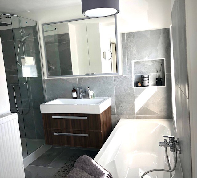 Je loue un appartement indépendant dans ma maison individuelle. Grâce à une entrée et un couloir communs au rez-de-chaussée, vous avez accès à votre salle de bain personnelle avec douche et à un appartement composé de - une pièce avec cuisine, poste de travail et coin salon - une chambre avec un lit de 140 et une commode - terrasse privée Distances : - Arrêt de bus et supermarché 5 min - Centre-ville à pied 20, en bus 10 et en voiture 5 min - FH est accessible en 7 min.