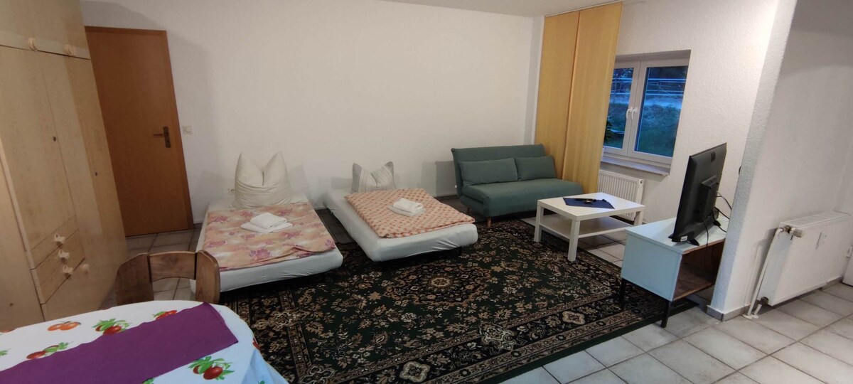 Confortable Appartement de 2 pièces dans la Gesindehaus Unternessa » Appartement de vacances, appartement de monteur ou pour les navetteurs 1-2 personnes (lit double 1,80x1,90 m, également possible en lits simples) 1-2 personnes supplémentaires sur canapé-lit (1,40x 2,00 m) possible. Situation calme à la périphérie d'Unternessa, parking à la maison, à seulement 4 km de la sortie A9 Weißenfels, Leipzig, Naumburg, Merseburg, Leuna, Zeitz, Halle, etc. rapidement accessible. Dans le jardin, possibilité de faire un barbecue/faire du feu, sur demande.