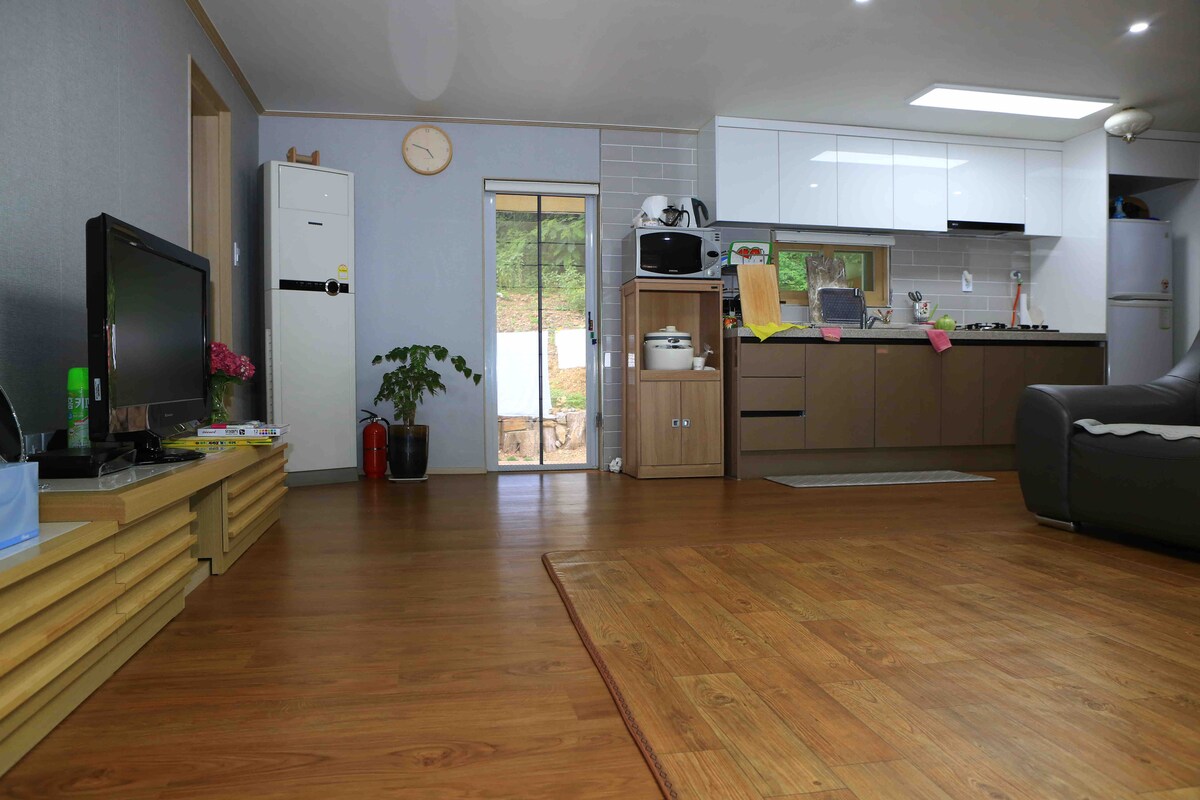Montez de la route jusqu'à la maison et garez-vous devant vous sous la lumière solaire immédiatement à votre droite lorsque vous voyez une grande zone. Si vous entrez dans l'entrée à côté de la lumière solaire, le hanok est le logement, et tous les autres bâtiments, cours, jardins et vallées sont exploités et gérés par une journée ensoleillée. Vous pouvez également découvrir des ateliers et des galeries textiles de teinture naturelle. C'est une maison de style hanok en bois et en terre. Le plafond est élevé par rapport aux appartements, aux maisons et aux hanoks normaux de la ville. Le salon est plus spacieux et semble plus grand parce que vous pouvez voir les chevrons. La housse de couette est bleue (indigo) et grise teintée de suie. Le futon est un duvet d'oie quatre saisons, il vous aidera donc à dormir confortablement. En automne, en hiver et au printemps, nous mettons le feu dans la salle Goodle, moins l'été. (Capacité maximale de 4 personnes)