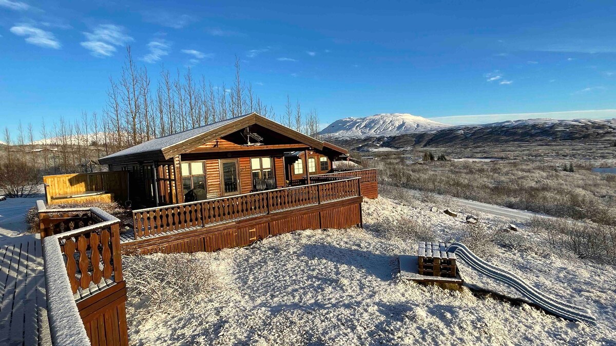 Chalet très confortable avec une vue magnifique sur le sud de l'Islande (Hekla et Eyjafjallajökull.) Entièrement meublé, 60 m2, deux chambres, cuisine, séjour et salle de bains. Convient pour 4 personnes. Belle terrasse et jacuzzi. Route goudronnée de 100 km depuis Reykjavik. À 10 km de Geysir (partie du Cercle d'or). Très proche du restaurant/réception Réttin et d'un terrain de golf pendant l'été. Wi-Fi gratuit.
