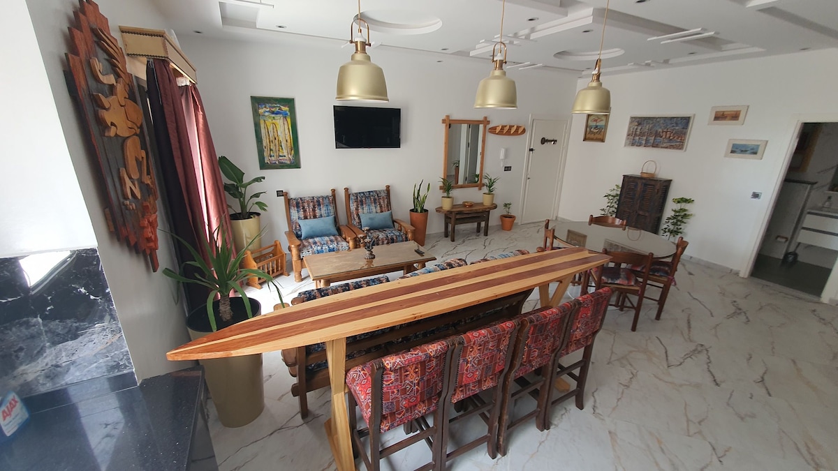 Wooden Heaven est un appartement unique au centre d'Essaouira, avec un agencement ouvert et une terrasse spacieuse offrant une vue panoramique magnifique sur la ville. L'intérieur, mettant en valeur le bois, dégage chaleur et charme, offrant un refuge paisible. Les invités peuvent profiter de vues quasi à 360 degrés, idéales pour admirer les levers et couchers de soleil. Cet appartement promet un séjour exceptionnel, alliant confort et vues incomparables sur le paysage urbain vibrant d'Essaouira